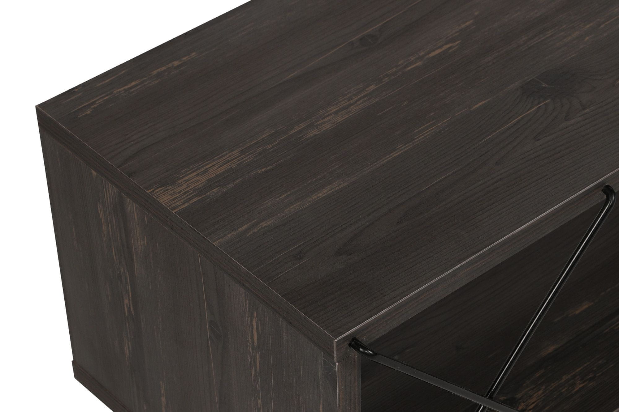 100 % MELAMINSKO PREVLEČENA IVERNA PLOŠČA Debelina: 18 mm Železne noge Širina: 120 cm Višina: 40 cm Globina: 30 cm Številne police Spodnja polica Dolžina: 120 cm Zgornja polica Dolžina: 93 cm Višina noge: 15 cm Številne police