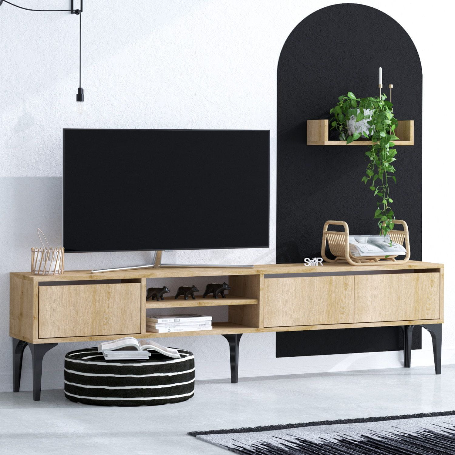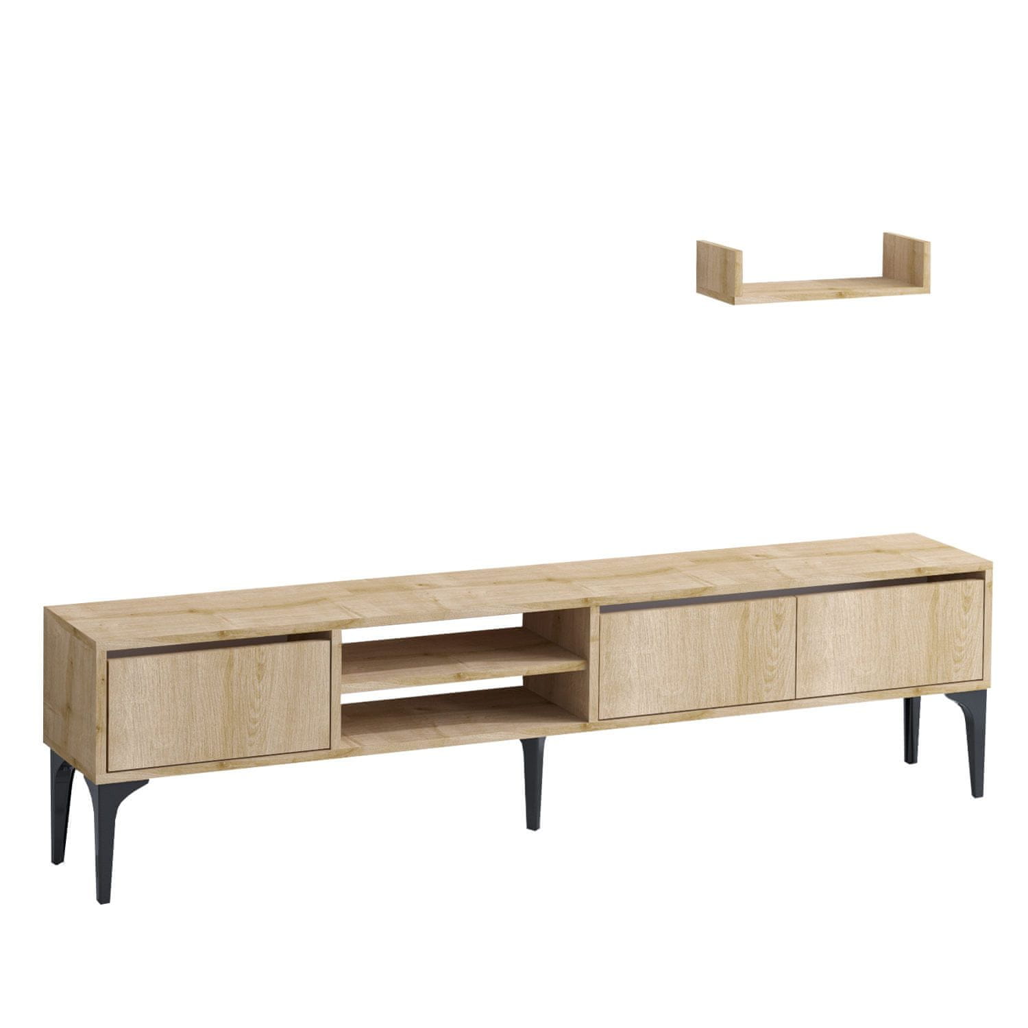 100 % MELAMINSKO PREVLEČENA IVERNA PLOŠČA Televizijska enota: Širina: 180 cm Višina: 50 cm Globina: 30 cm Višina nog: 25 cm Stenska polica: Širina: 40 cm Višina: 12 cm Globina: 15 cm