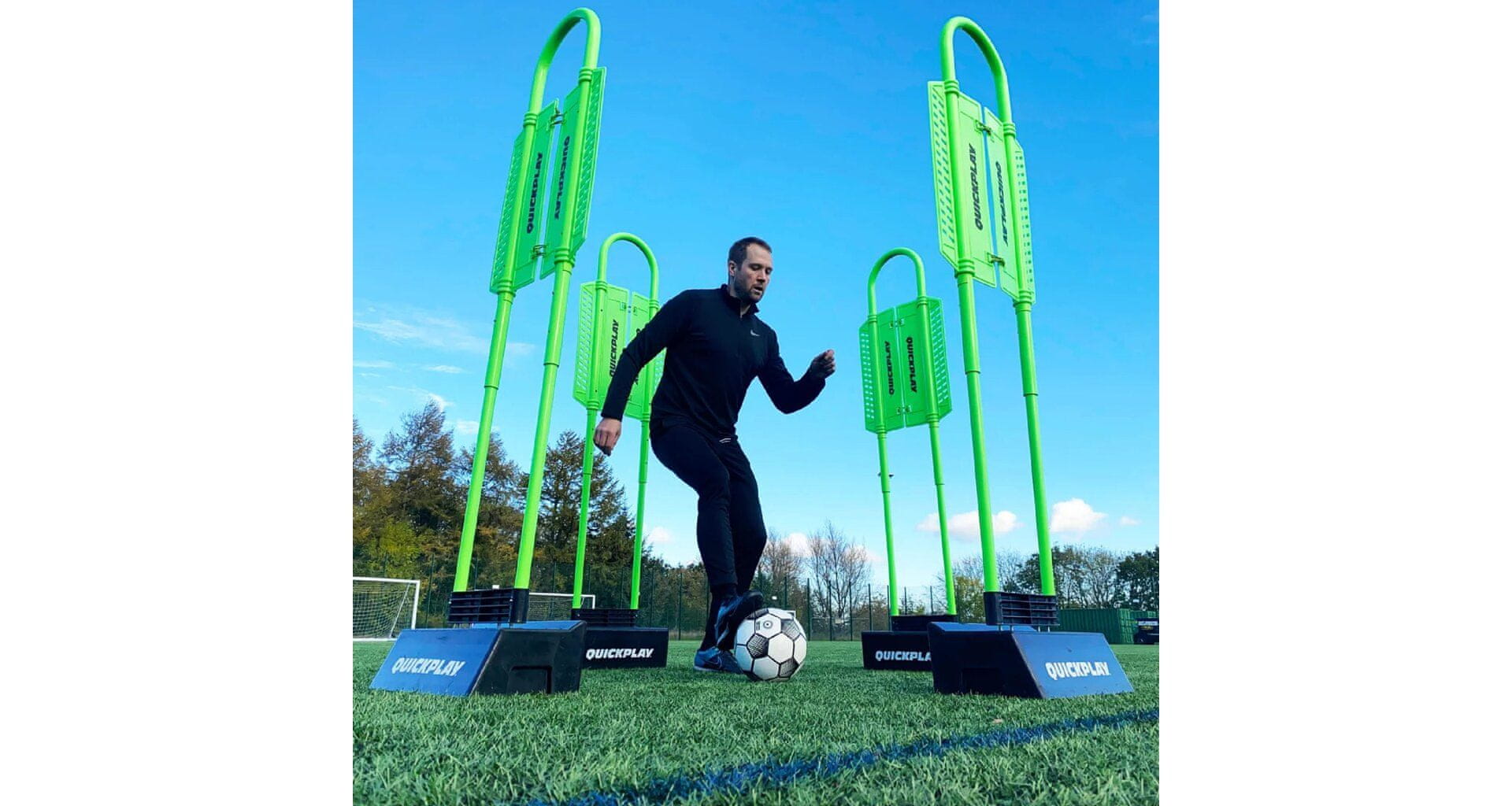 Trenažna lutka Quickplay Replay Defender Block je odličen pripomoček za vsak nogometni klub. Uporablja se za vadbo natančnosti neposrednih udarcev v igralnih situacijah pri izvajanju kazenskih udarcev in tudi kot pripomoček za vadbo nogometnih vratarjev v teh situacijah. Velika prednost tega modela je njegova nastavljiva višina za 4 ravni, ki se giblje od 125 do 189 cm. Blok za branilce Quickplay Replay ima jeklene bodice za uporabo samo na travnatih površinah, v paketu pa je tudi gumijasta podlaga, da lahko lutko uporabljate na trdih površinah, na primer v zaprtih prostorih ali na umetni travi. Podstavek se lahko uporablja tudi kot odbojnik, tako da lahko vadite podajanje in vodenje žoge. Parametri: – material: plastika jeklena guma – 4 nastavljive višine: 125 cm / 162 cm / 178 cm / 189 cm – širina: 50 cm – višina bodic: 14 cm – premer droga: 40 mm – teža lutke: približno 37 kg – mere podstavka: 50 × 28 × 18 cm – teža podstavka: približno 15 kg – uporaba na trdi in travnati površini