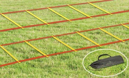 Športna lestev je naprava za vadbo. Vpliva na razvoj kondicije, koordinacije in agilnosti. Omogoča vam, da delate na hitrosti in nadzoru telesa. Uporablja se tako za ekipni kot individualni trening. V kompletu je torba, ki olajša transport in prepreči odvijanje lestve. Hitro in enostavno ga lahko postavite na igrišče, vrt, dvorano ali telovadnico. Razmik med prečkami je nastavljiv glede na potrebe in vrsto izvajane vadbe ter zmožnosti osebe, ki vadi. Parametri: Velikost: 600 × 50 cm Barva: rumena, rdeča Nastavljive prečke Material: plastika Torba za prenašanje Teža: 1 kg Komplet 2 kosov