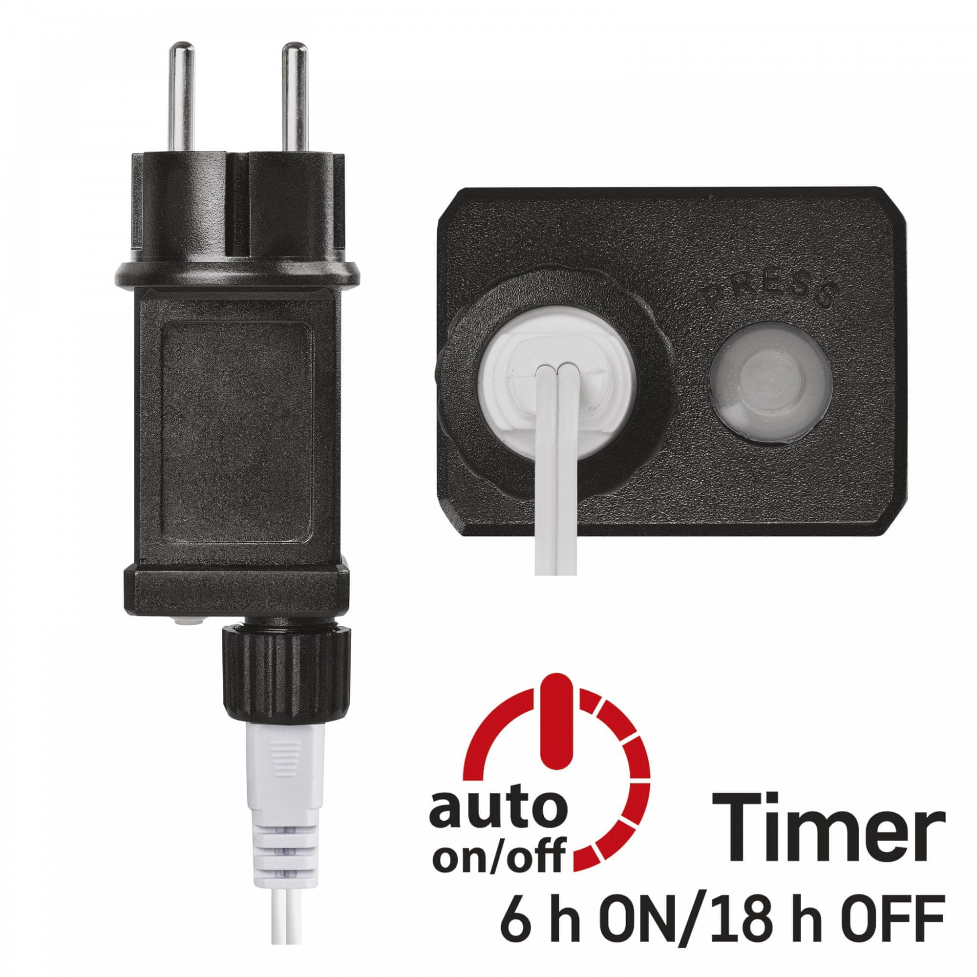 Svetleča veriga blagovne znamke Emos s 40 LED žarnicami, s katero lahko okrasite celo notranjost. S pomočjo časovnika lahko nastavite, da se luči samodejno aktivirajo v izbranem času. Zaradi zaščite IP44 jo lahko uporabljate tudi v zunanjih prostorih.
