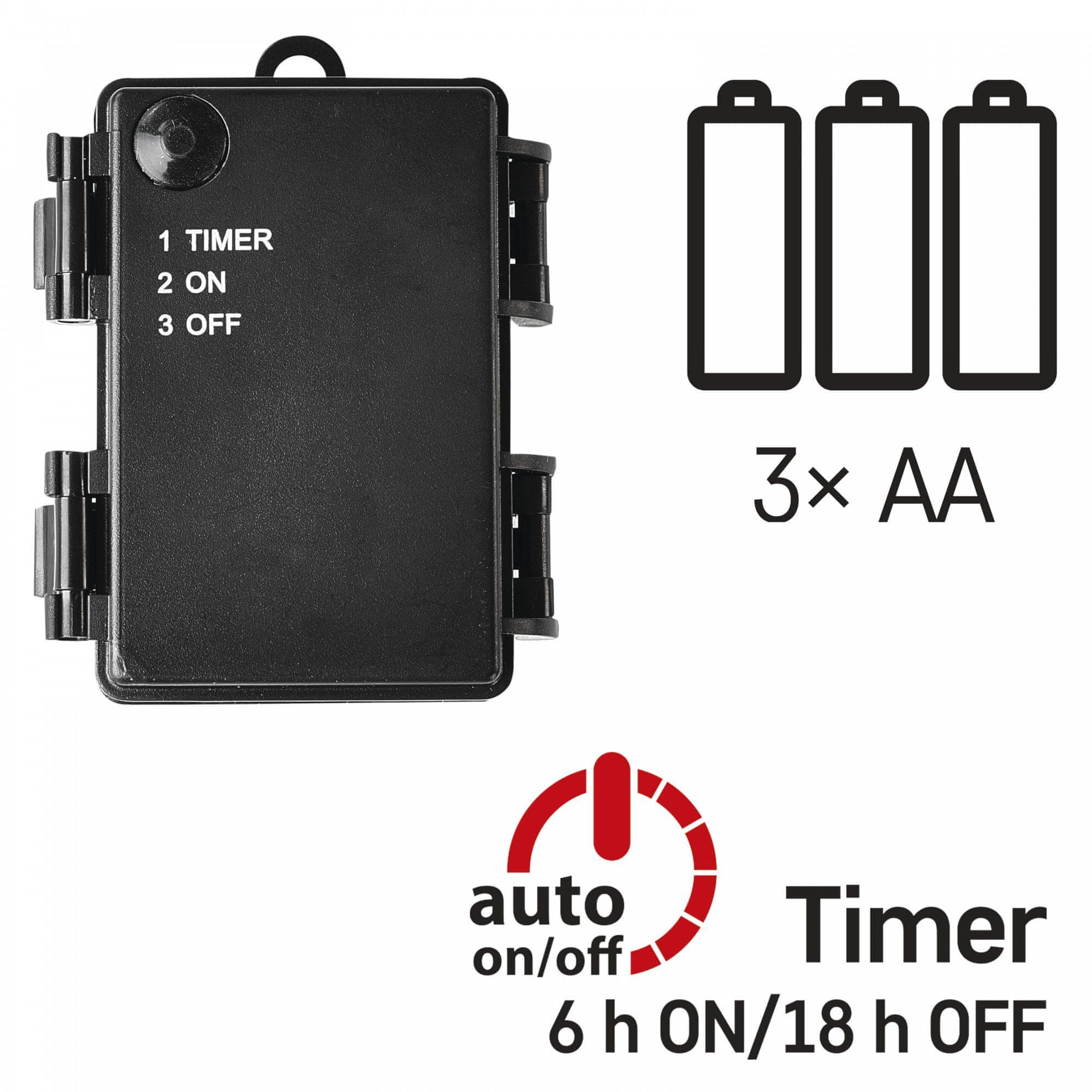 Emos LED božična veriga, 8,4 m, 3x AA, zunanja in notranja, topla bela, časovnik