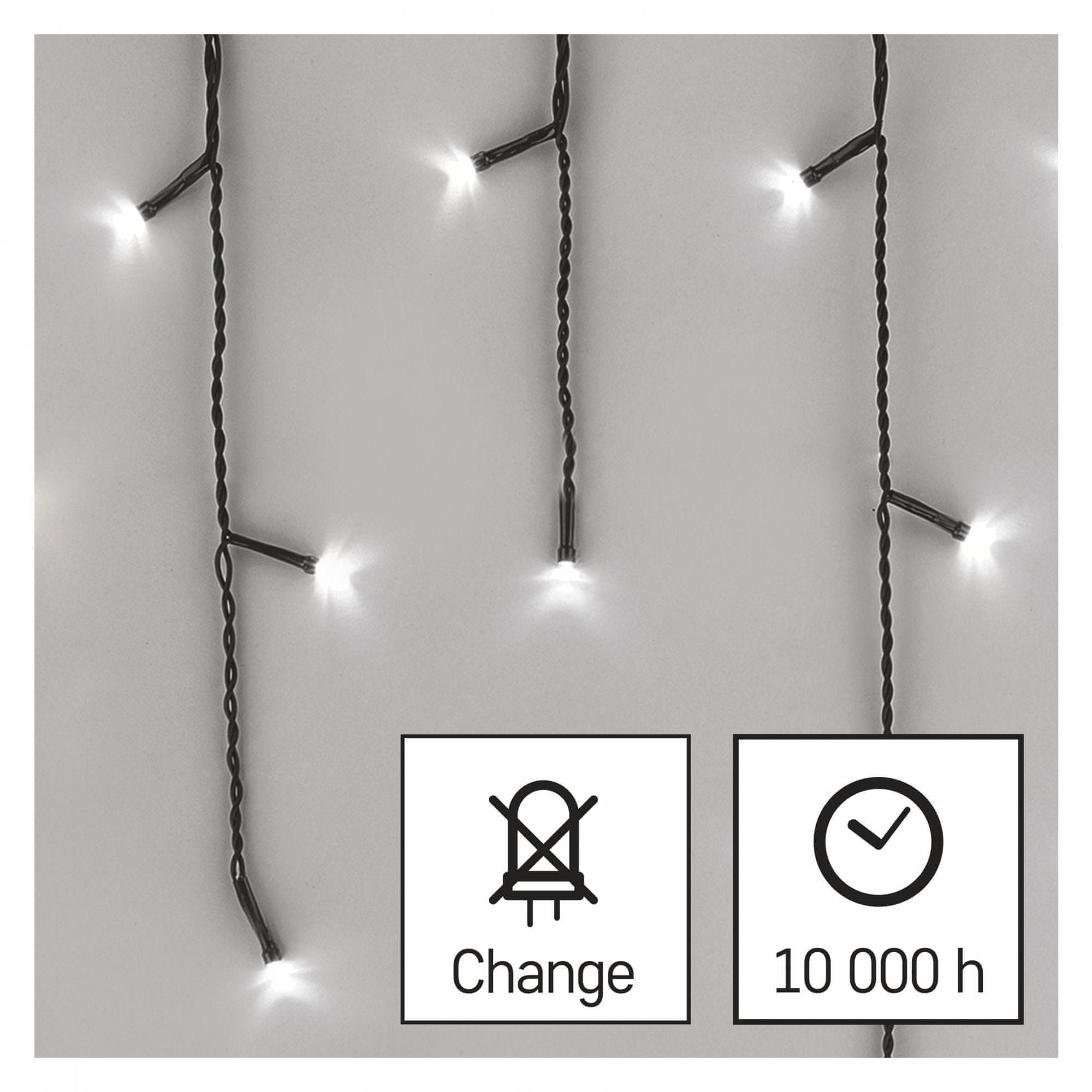 Emos LED svetlobna veriga s programi, kapniki, 10 m, hladna bela