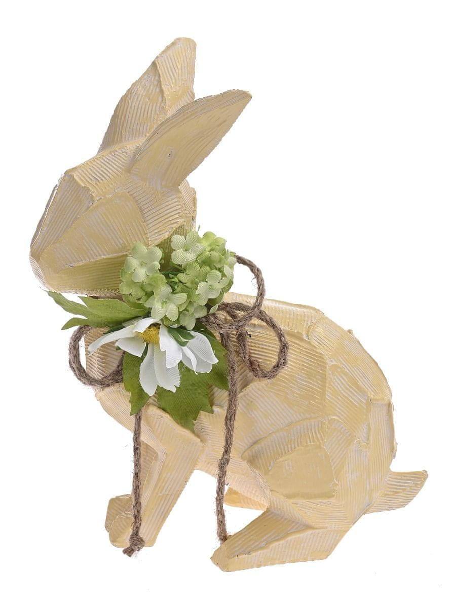 26 cm visok rumeni zajec je figurica sodobne geometrijske oblike. Okras iz cvetja, povezanega z vrvico, mu daje spomladanski značaj. Dekoracija bo osvežila vsako notranjost in dopolnila velikonočne aranžmaje.nbsp; Velikonočna kolekcija Miloo Home bo poskrbela, da bo vsaka notranjost dobila lahkoten, pomladni značaj. Pisani venci, okrasne košare in okrasni zajčki bodo v notranjost vnesli svežo, praznično auro.