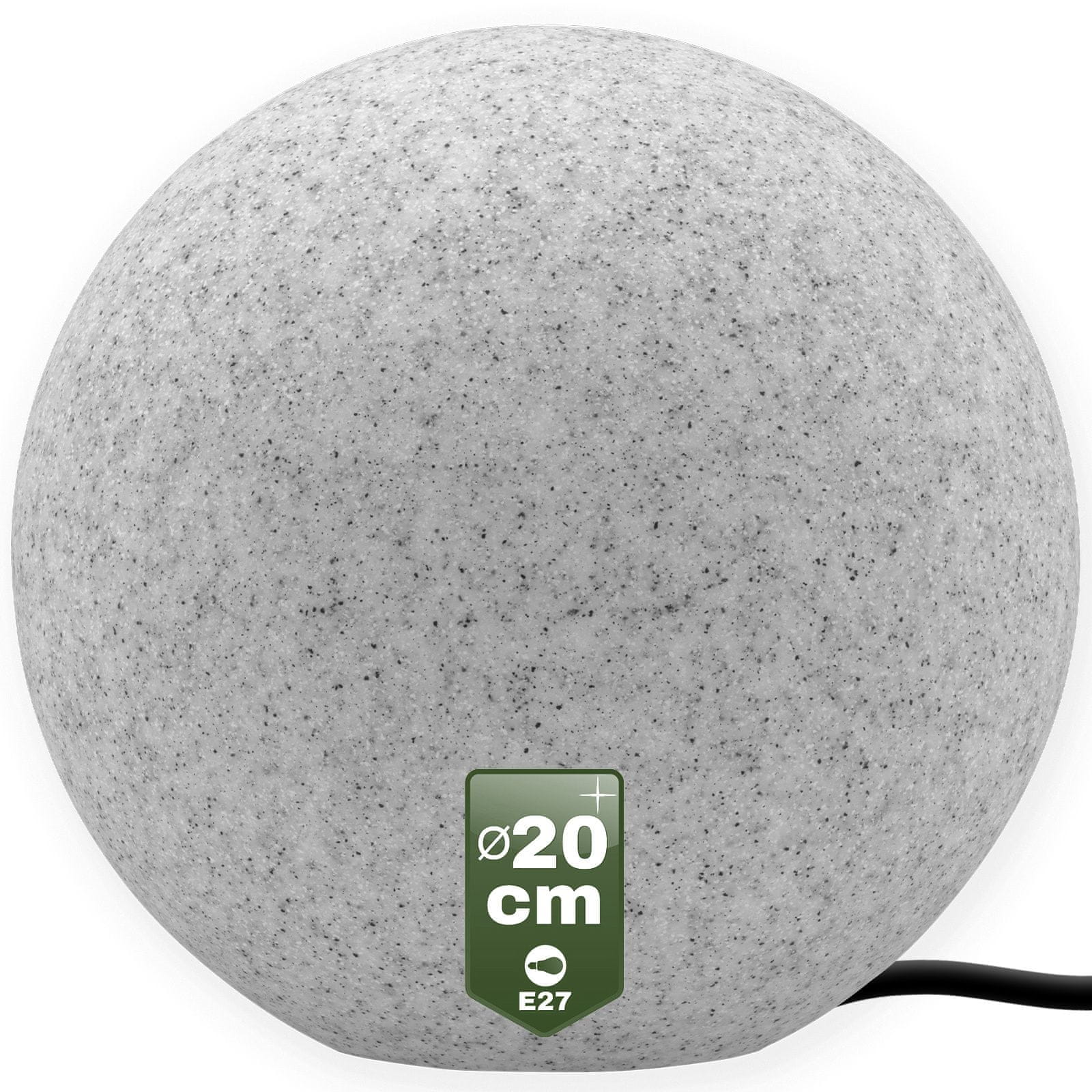 ⭐ Vrtna svetilka v obliki kamnite krogle premera 20cm iz serije LUMIKULA znanega in priznanega podjetja LUMILED. Naša vrtna svetilka je izdelana iz najkakovostnejših materialov in je opremljena s klasičnim navojem E27 in kablom z vtičem dolžine do 138,5cm. Okrasna vrtna krogla ima visoko stopnjo