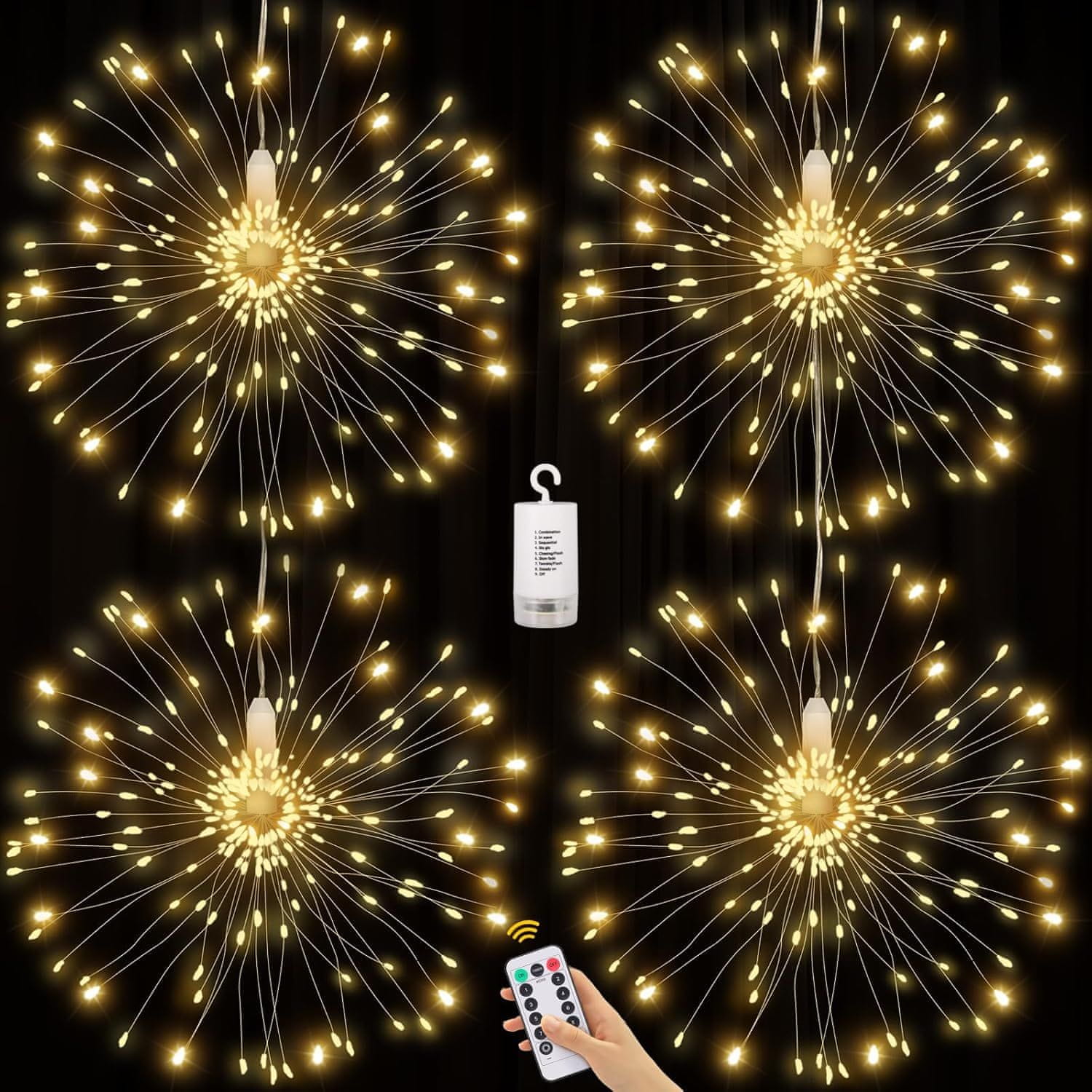 Netscroll Svetlobna LED lučka v obliki ognjemeta, 120 LED lučk na bakreni žici, 8 načinov utripanja z daljincem, 10 različnih svetlosti, vodoodporna za notranjo in zunanjo uporabo, RomanticLights