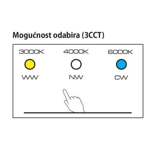• Ima opcijo CCT – možnost spreminjanja barve svetlobe po želji od toplo bele (3000K) do hladno bele barve (6000K).