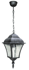 Estetska, viseča LED vrtna svetilka (lestenec). V kompletu je univerzalno držalo za montažo na ograjo, streho ali fasado. Opremljen s svetlečimi in energetsko varčnimi LED diodami, ki se napaja z vgrajeno baterijo in sončno ploščo