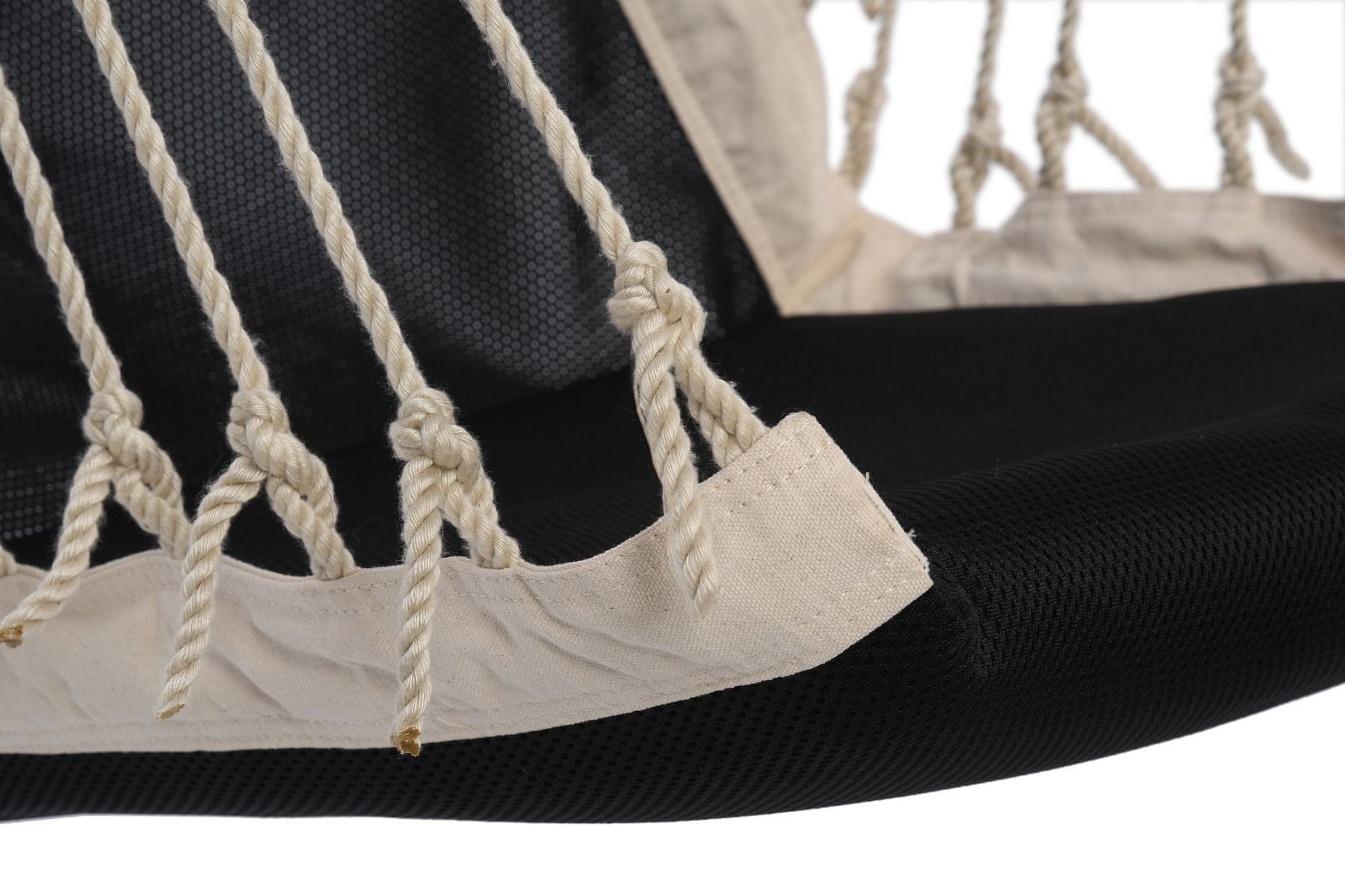Sedeča viseča mreža Alicante v črni barvi je najboljši način za preživljanje dolgih poletnih dni na prostem. Hamaka je izdelana iz trpežne tkanine in ima trdno konstrukcijo, zaradi lesenega droga pa med uporabo ohranja stalno obliko, kar vam omogoča udobno sprostitev in enostavno sedenje. Močne vrvi Celoten opis