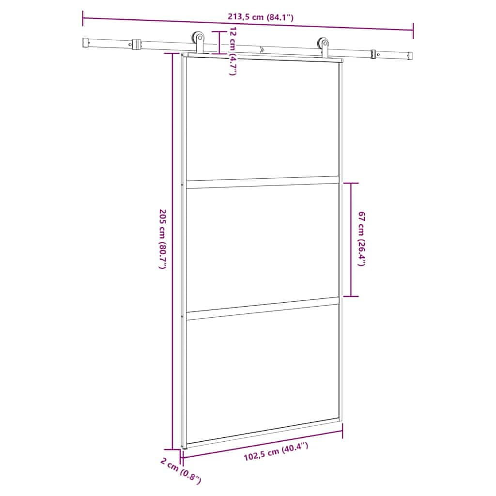 Vidaxl Drsna vrata z opremo 102,5x205 cm kaljeno steklo in aluminij