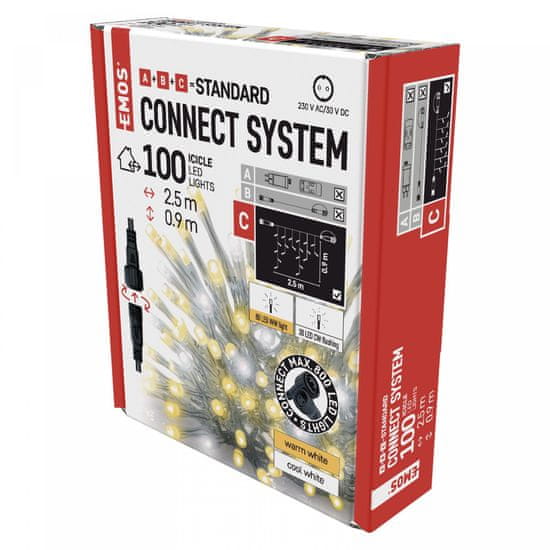 Emos povezovalni niz za božično osvetljavo v obliki zavese je primeren za zunanjo in notranjo uporabo. Dolg je 2,5 m, na njem pa je 100 LED lučk, ki vam z utripanjem božično smreko osvetlijo v hladni beli barvi. Za še več možnosti ima tudi časovnik. S to verigo si lahko pričarate si prijetno praznično vzdušje v svojem domu.