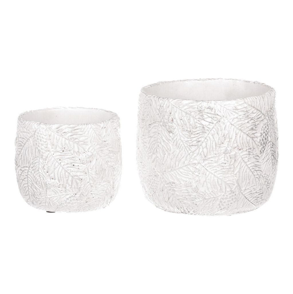 Betonski okrasni ovoj za cvetlični lonec, motiv iglic, belo-srebrn, set 2 Celoten opis