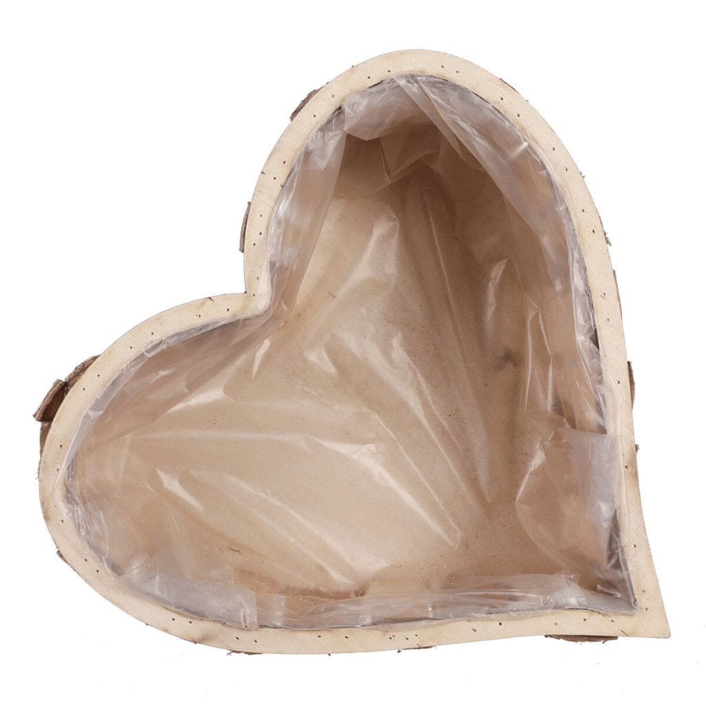 Pokrov za aranžma – lesen, oblika srca, naravna barva