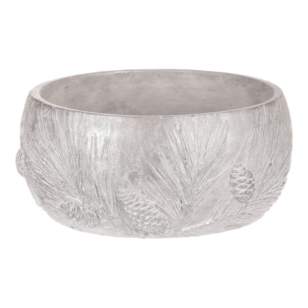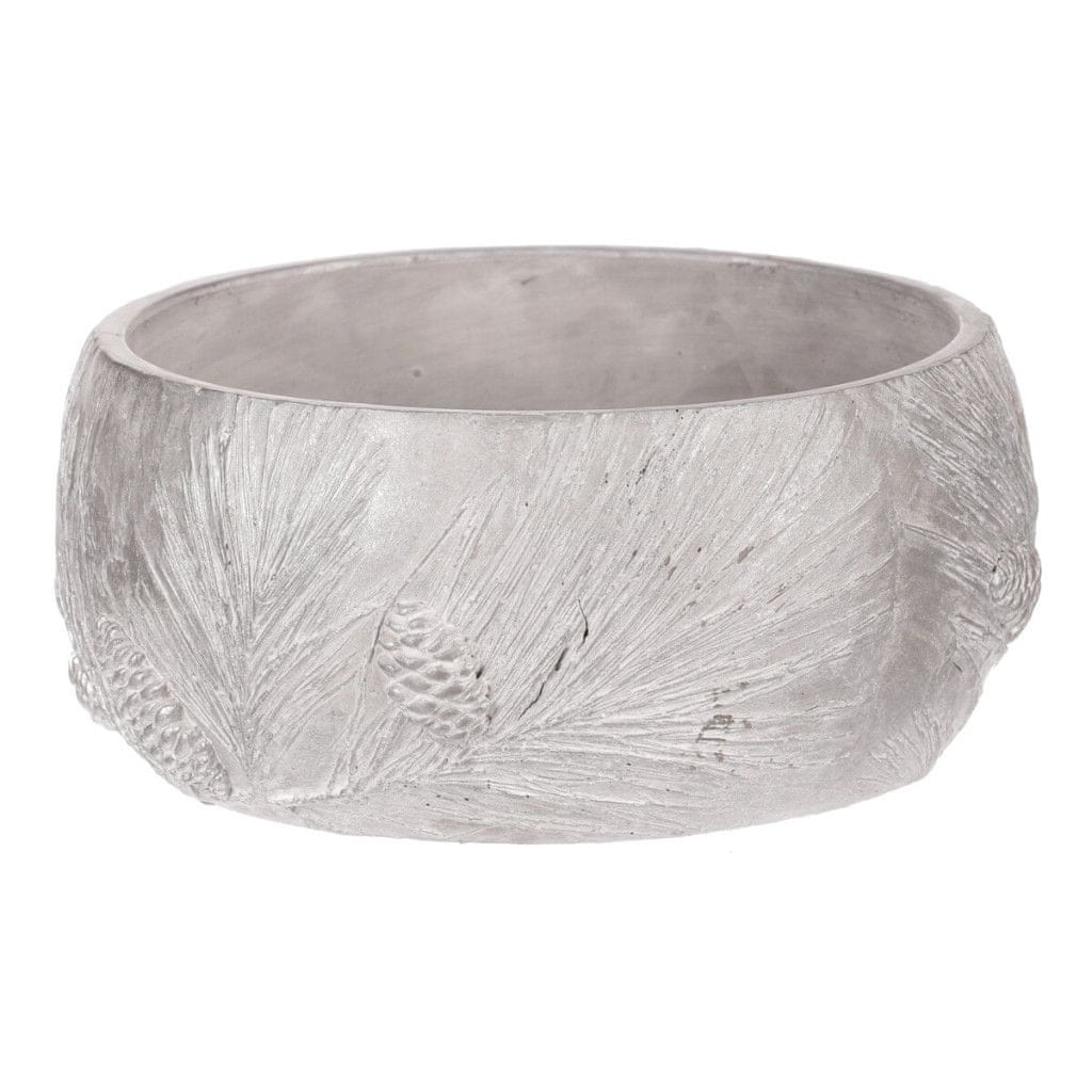 Autronic Nizek betonski okrasni lonček, motiv borove vejice, srebrno siv, set 2 kosov