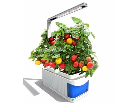 Ta lonec je majhna sajenje škatla z vgrajeno razsvetljavo in vodo, kjer lahko raste neverjetno različne rastline, cvetje, zelišča in zelenjave. Škatla ima 2 semenski stroki, tako da lahko združite več rastlin v enem loncu. Zasnovana je tako, da se samo zaliva in drži dovolj vode, da pravilno razmaže semen približno mesec dni. Obstaja posebna LED rastna luč, ki jo lahko povečate v višini, ko rastejo vaše rastline.