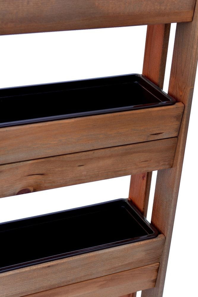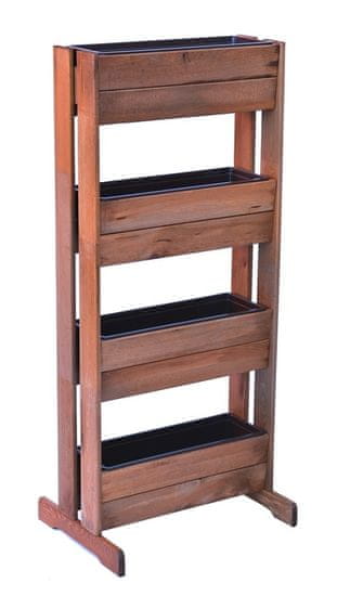 Lesen sadilnik iz borovega lesa, rjave barve. Zaradi svoje praktične zasnove, ki kar najbolje izkoristi prostor, bo sadilnik odličen dodatek za vaš vrt ali teraso. Celoten opis