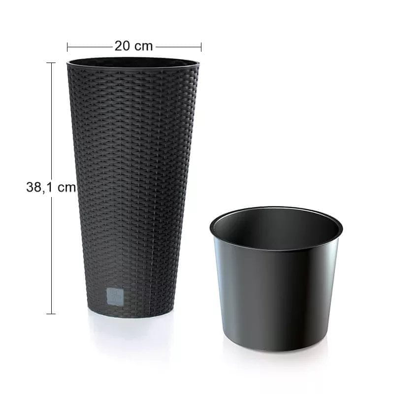 DRTUS200 20 cm je visok, tanek plastični sadilnik, za katerega je značilna nezmotljiva tekstura, ki posnema tkanje naravnega ratana. Bo eleganten, estetski in funkcionalen dodatek za vaš vrt, teraso, balkon ali interier. Dimenzije tega edinstvenega dodatka so (ŠxGxV): 20×20×38,1 cm in vključuje tudi plastični vložek, ki zmanjša količino potrebne zemlje. Popoln dizajn antracita se popolnoma prilega vsakemu slogu notranje ali zunanje dekoracije.