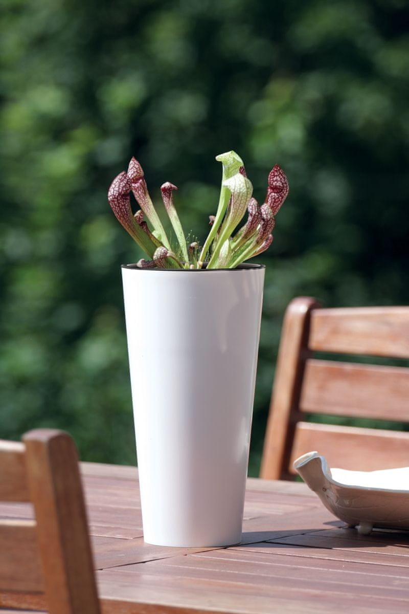 20 cm plastični sadilnik DTUS200S prinaša zelo moderen in izviren dizajn s seboj v vašo notranjost ali vrt. Material za izdelavo je visokokakovostna plastika, ki je odporna na UV sevanje in vremenske vplive. Odlikuje ga majhna teža in je enostaven za vzdrževanje. Vsebuje tudi plastični vložek, ki zmanjša količino potrebne zemlje. Njena izjemna bleščeče bela barva bo izviren okras in edinstven kos vašega vrta. Skupne dimenzije (ŠxGxV): 20×20×38,1 cm.