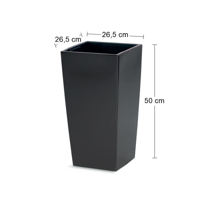 Pravokoten plastični cvetlični lonec DURS265 26,5 cm je primeren za celoletno uporabo, tako v notranjih kot zunanjih prostorih. Zahvaljujoč čudovitemu dizajnu v antracitni barvi bo odlično izstopal na terasi, vrtu, balkonu ali v dnevni sobi ali kjerkoli vam pade na pamet. Izdelan je iz kakovostne plastike, zaradi česar je odporen na vremenske vplive. Ima mat površino, rahlo zaobljeno obliko in je enostaven za vzdrževanje. Dimenzije tega edinstvenega dodatka so (ŠxGxV): 26,5×26,5×50 cm in vključuje tudi plastični vložek, ki zmanjša količino potrebne zemlje.