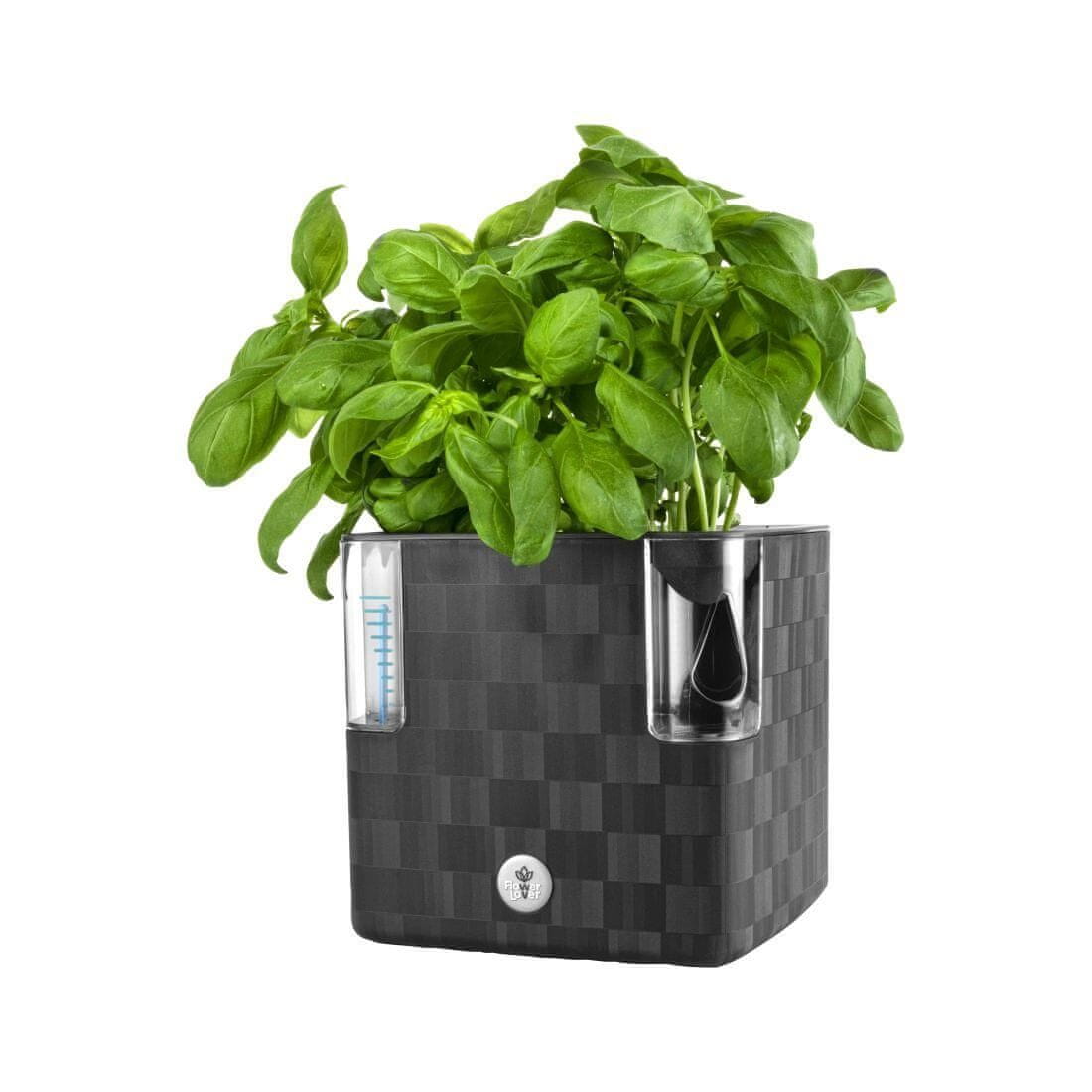 Cvetlični lonec Cobble antracit, dekorativni, 14×14cm Oblikovalski sadilnik z lastnim namakalnim sistemom Aqua. Je lahek, zagotavlja dolgo življenjsko dobo rastlin, odporen proti mehanskim poškodbam in dobro prenaša UV žarke. Primeren za gojenje zelišč in manjših rastlin. Uporablja se lahko na lo Celoten opis