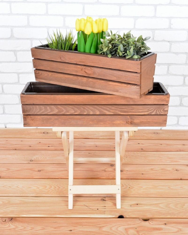 Visokokakovostna borova lesena škatla je obarvana v prijetno rjavo, kar poudari naravni vzorec lesa in podaljša življenjsko dobo izdelka. S svojim sodobnim dizajnom se lepo poda k različnim stilom zunanjih prostorov.