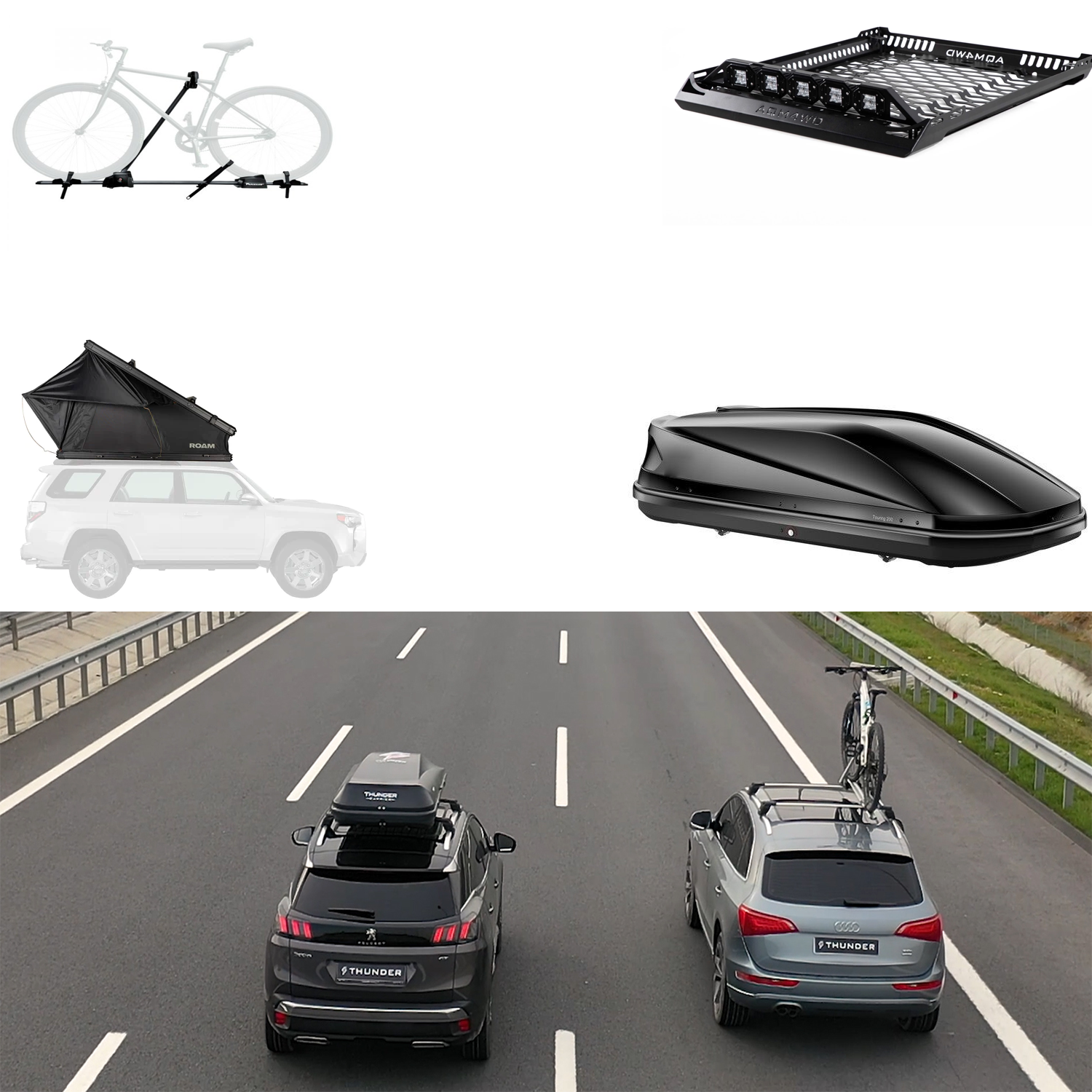 Novo, nizka linija strešnih nosilcev Thunder, nameščen na integriranih strešnih nosilcih.