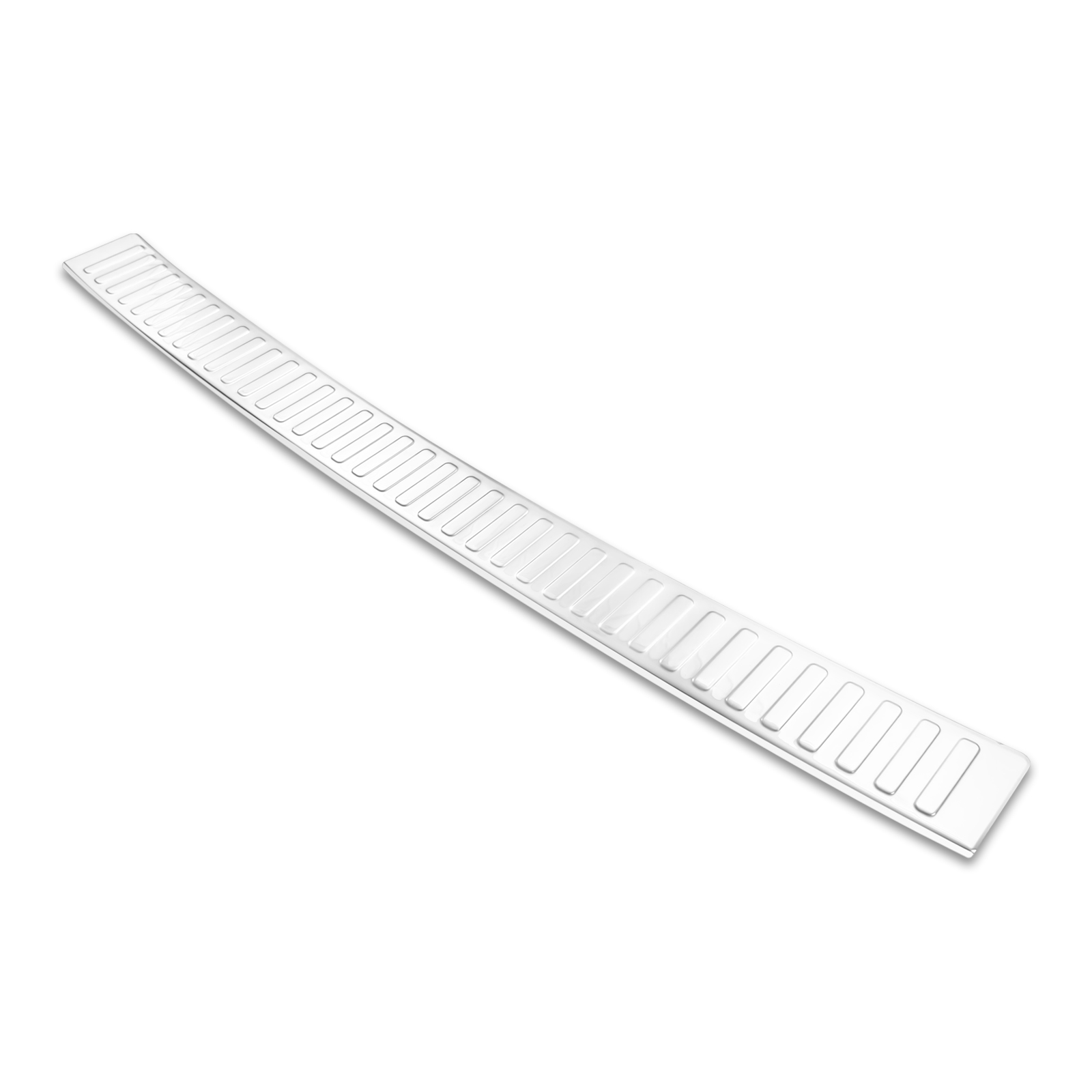 Dekorativna, sijoča obloga vrat prtljažnika iz nerjavečega jekla.