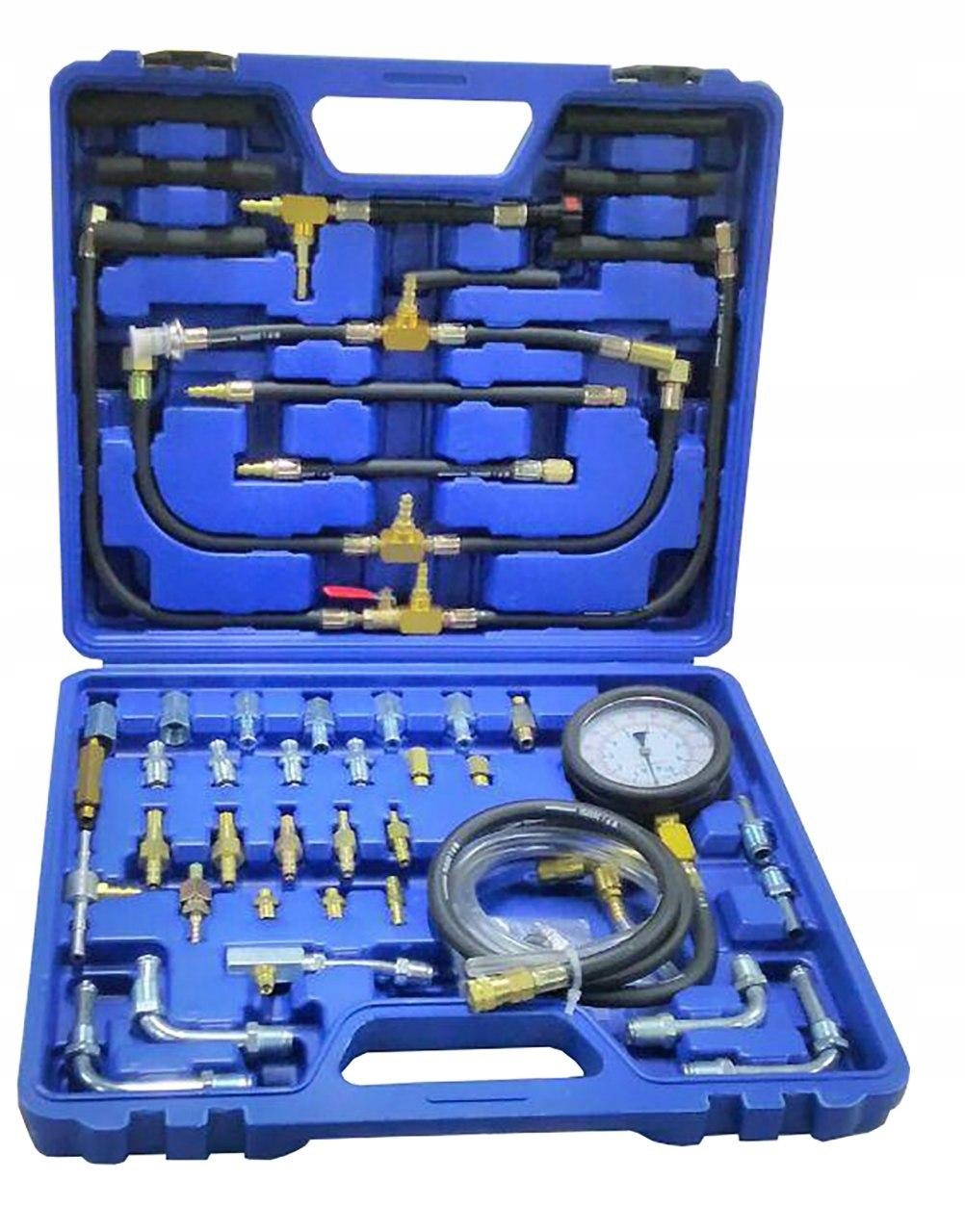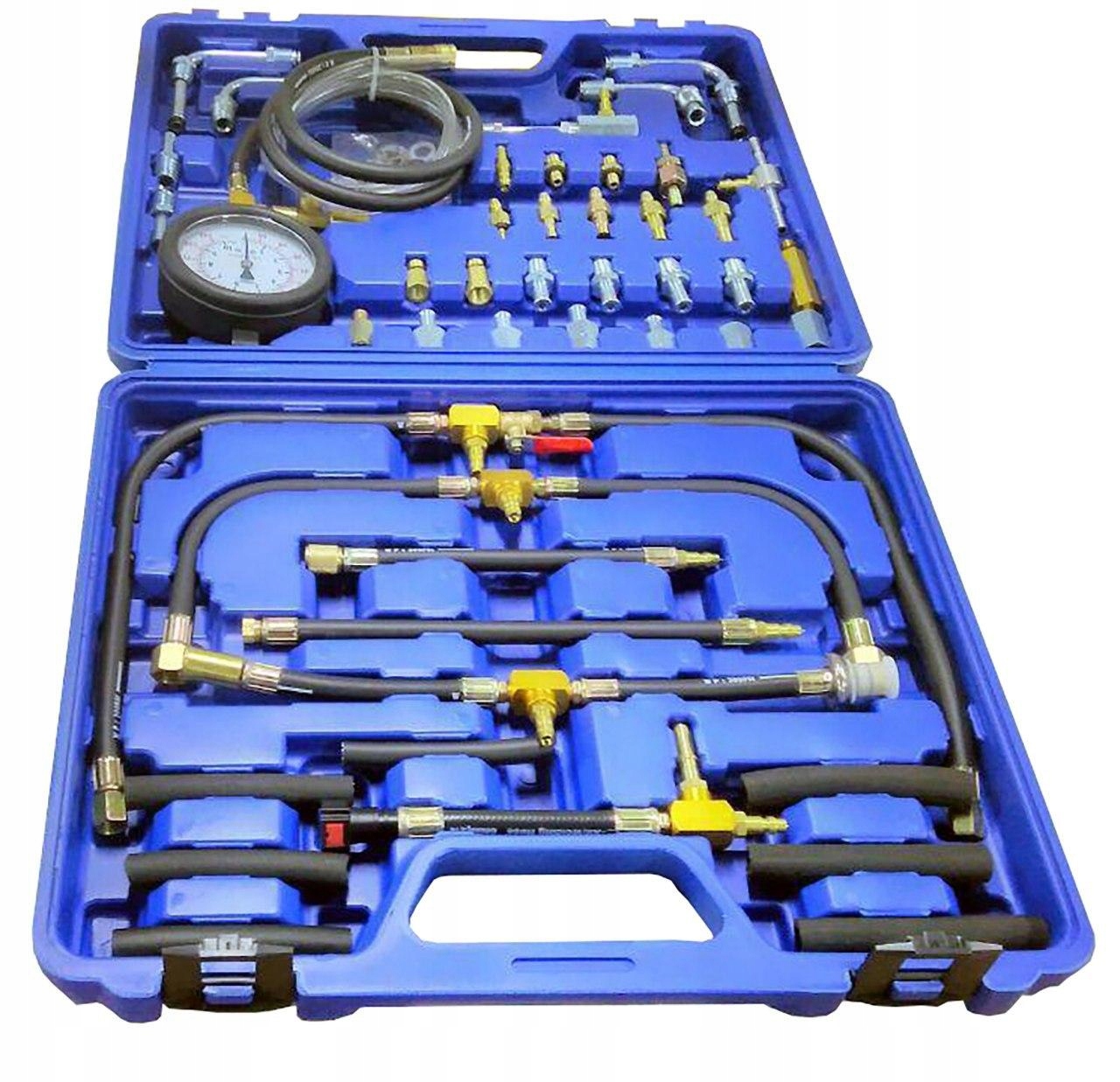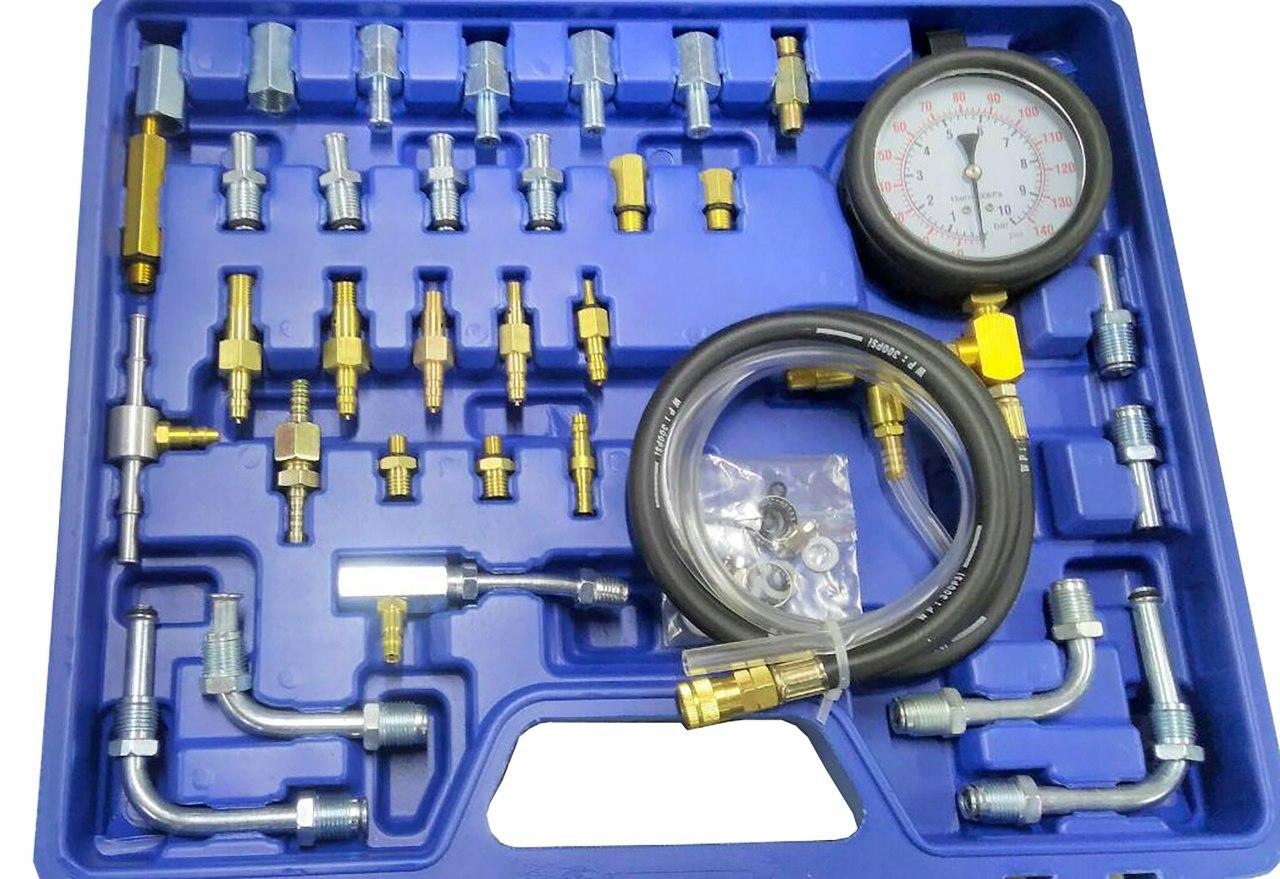 Komplet za testiranje sistemov vbrizgavanja v bencinskih motorjih, območje do 140 PSI / 10 barov . Za sisteme: K – in KE – sistem Jetronic sis, KE – sistem Jetronic kic, L – sistem Jetronic liw , merjenje tlaka črpalke, merjenje povratnega tlaka. Tester se uporablja za merjenje tlaka bencina v sistemu za gorivo večine znamk motorjev.