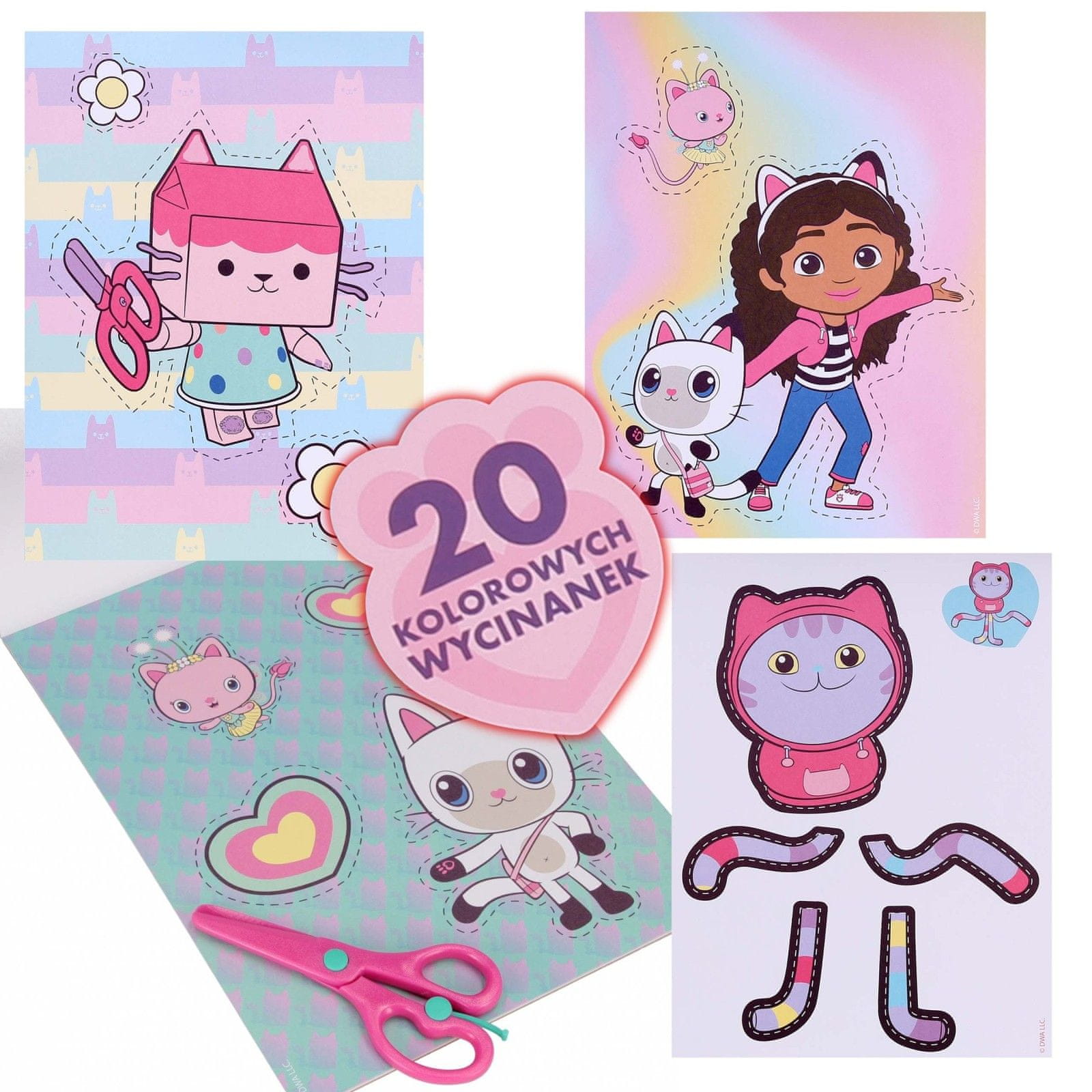 • – 20 pisanih izrezkov formata A4 – privlačni vzorci z liki iz Gabbyjine hišice za punčke.