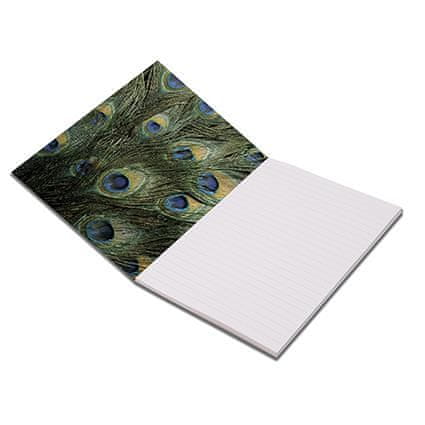 Velikost A5 pokončni. črtast, razmik med črtami je 8 mm. 50 listov, zlepljenih na vrhu strani. Ovitek papir brezlesni 300 g. Podlaga bloka 450 g karton, bel. Notranjost papir 80 g brezlesni. Barvni ovitek, ki se ujema z zvezkom s spiralo in mapo z zavihki in elastiko, notranja stran ovitka je. Celoten opis