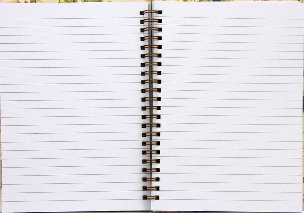 Spiralni zvezek s trdimi platnicami ima 100 črtastih listov – 200 strani. Velikost zvezka je 14,5×20,5 cm, gramatura papirja je 70 g/m2. Nežni zlatotisk na platnicah. Celoten opis