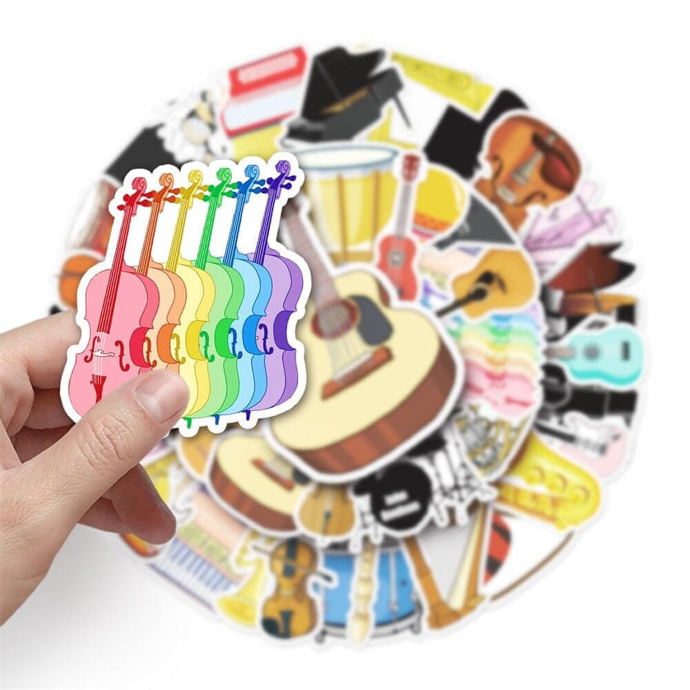 Te nalepke so nekaj za vse glasbenike in ljubitelje glasbe! Predstavljajo instrumente različnih vrst in vsaka nalepka ima svoj edinstven dizajn. Motivi vključujejo kitare, bobne, klavirje in še marsikaj. Nalepke so kvalitetne in izdelane iz okolju prijaznih materialov. So vodoodporni in se lahko uporabljajo tako v zaprtih prostorih kot na prostem.