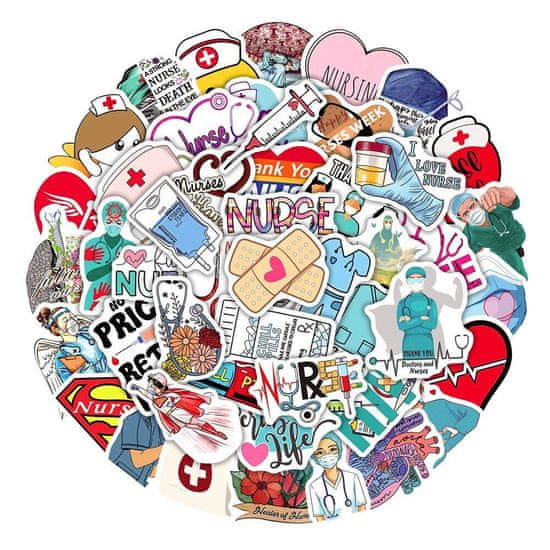 Ali delate vi ali kateri koli sorodnik kot medicinska sestra? Motivi na teh nalepkah predstavljajo poklon tej pomembni poklicni skupini. Paket vsebuje 50 kvalitetnih in vodoodpornih nalepk. Idealno, ko želite svojim najljubšim pripomočkom dodati osebno noto!