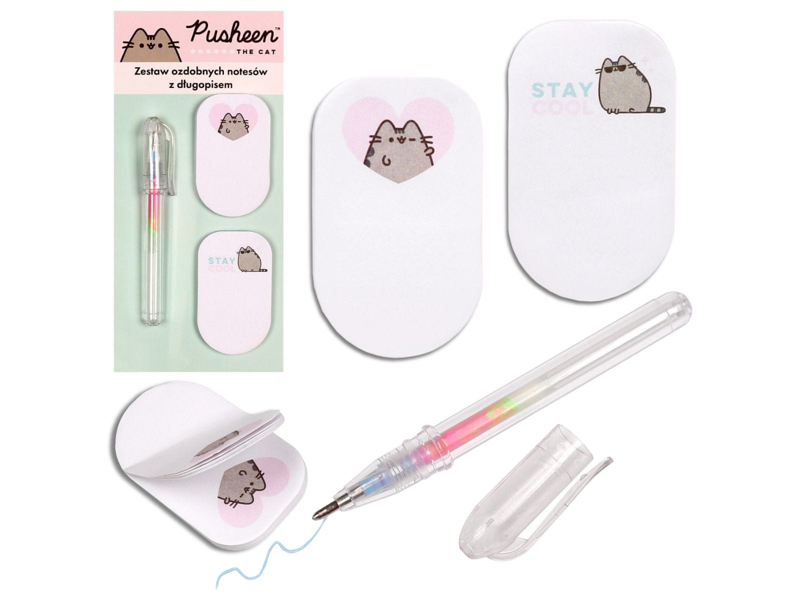 Komplet Pusheen vsebuje dva okrasna samolepilna lista in prozorno pisalo, zato je odličen dodatek za svinčnik ali pisalno mizo.Beležnice so okrašene z ljubkimi grafikami z mačkom Pusheen, ki popestrijo vaše dnevne zapiske.Vsak blok vsebuje 30 kartic velikosti 30×50 mm, ki so idealne za zapiske, zazn Celoten opis