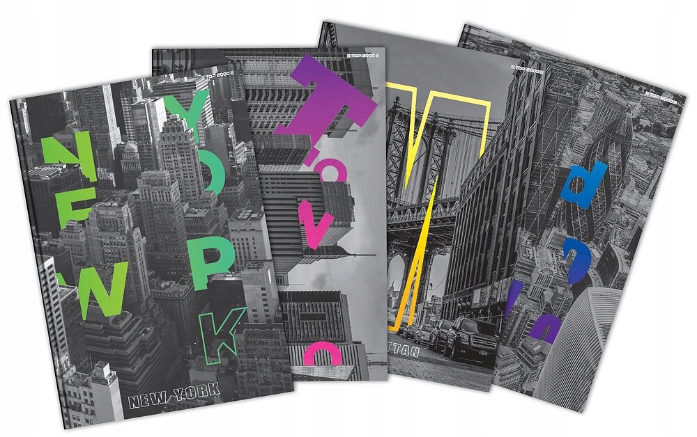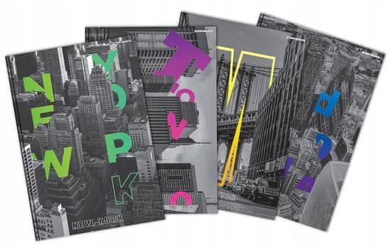 Zvezki iz kolekcije City so kombinacija črno-belih podob mest in barvitih napisov, vgrajenih vanje. Skrbno oblikovane ilustracije so edinstvene in neponovljive. Zahvaljujoč univerzalnemu dizajnu so kot nalašč za šolo in pisarno.