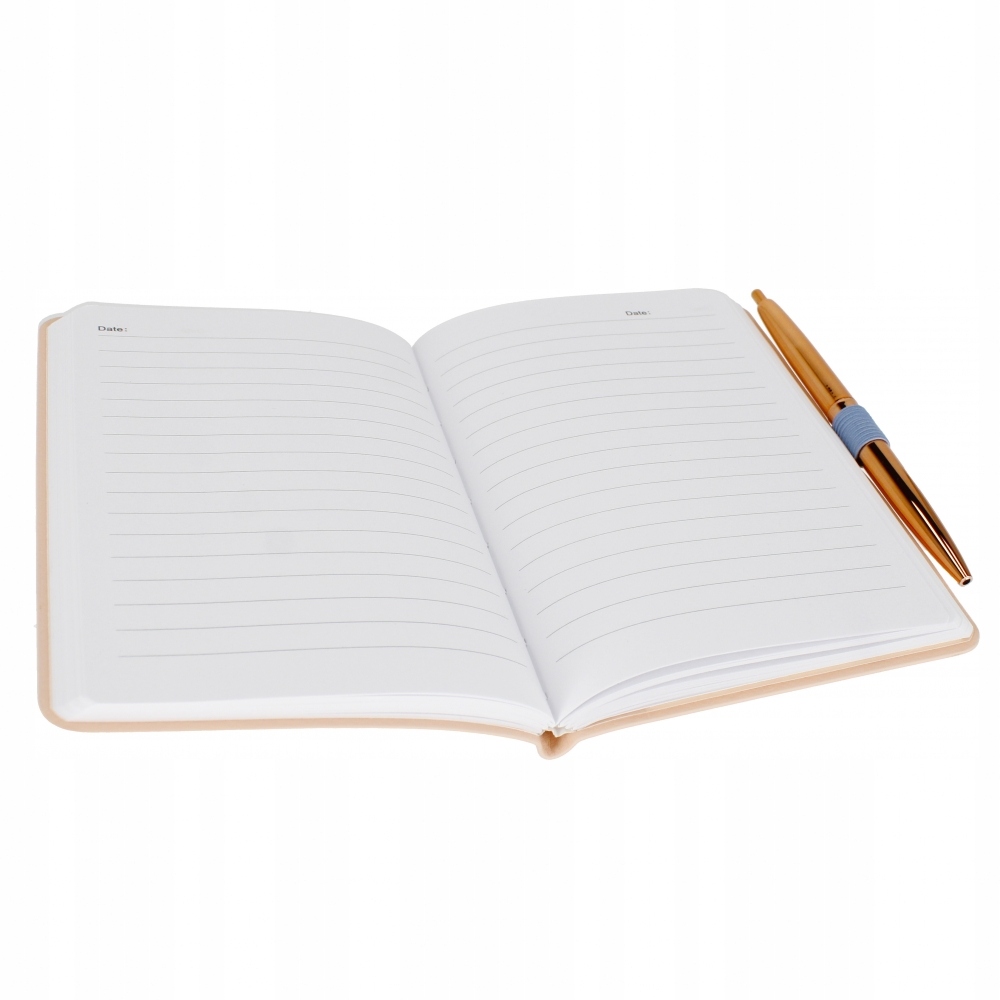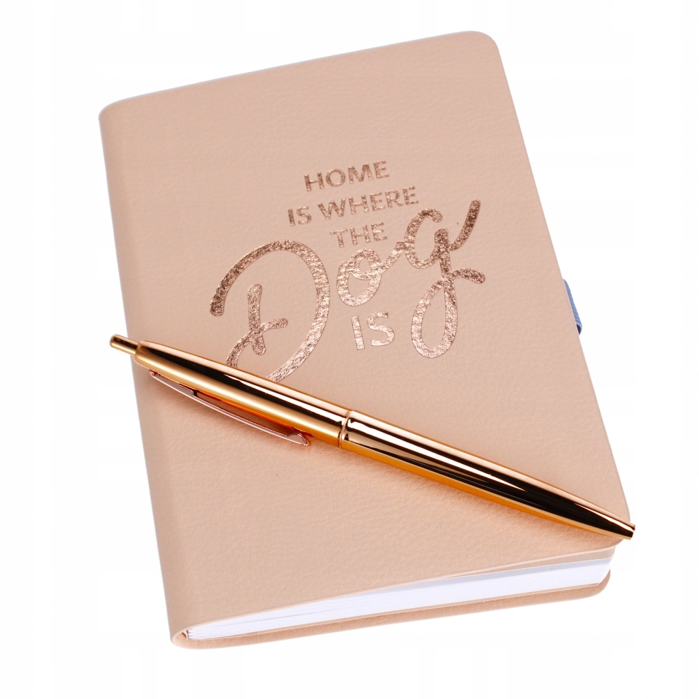 Komplet STARPAK je sestavljen iz črtastega zvezka z mehkimi platnicami v roza barvi in rožnato zlatega kemičnega svinčnika z zložljivim kemičnim svinčnikom.