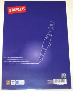 Pisalni blok priznane znamke Staples se ponaša s kar 50 črtastimi listi. Blok je v velikosti A4. Celoten opis