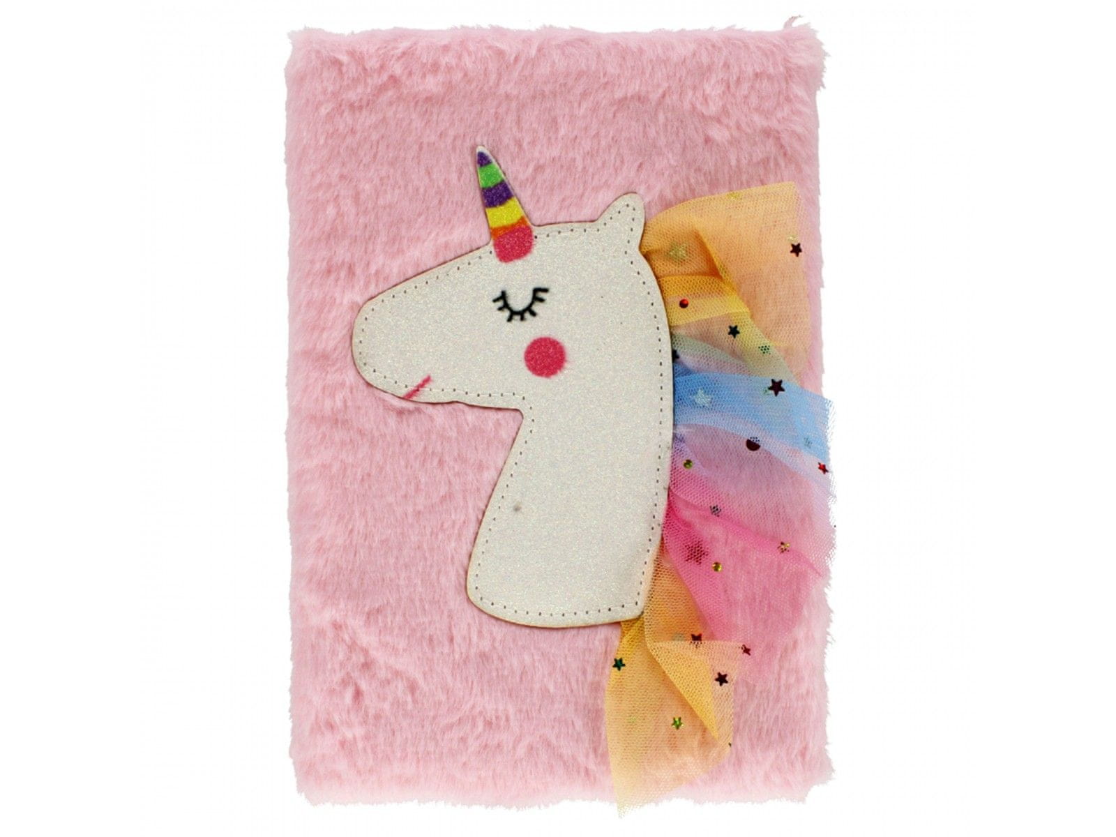 Samorog Plišasti dnevnik/zvezek v pastelno roza barvi je izjemen dodatek za vsako malo ljubiteljico samorogov.