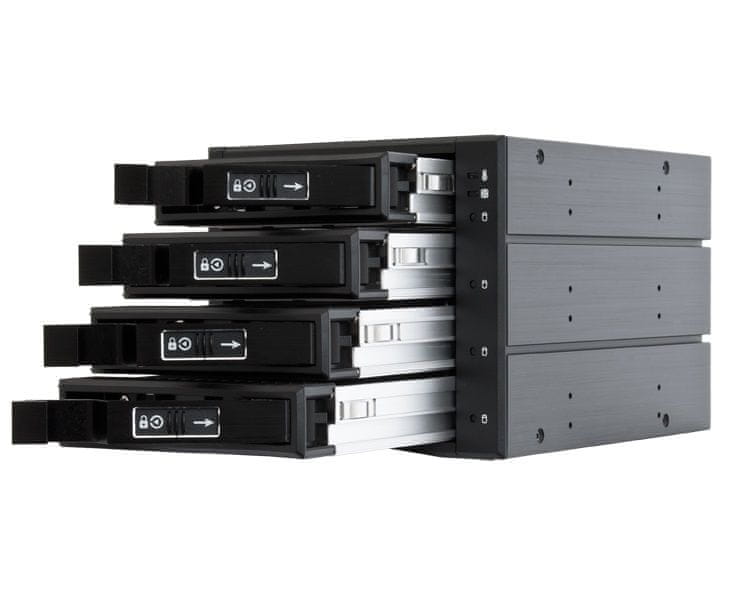 Notranjo škatlo z 80 mm velikim ventilatorjem je mogoče enostavno vstaviti v tri 5,25-palčna mesta. Škatla je zasnovana za štiri 3,5" ali 2,5" trde diske z vmesnikom SAS ali SATA.